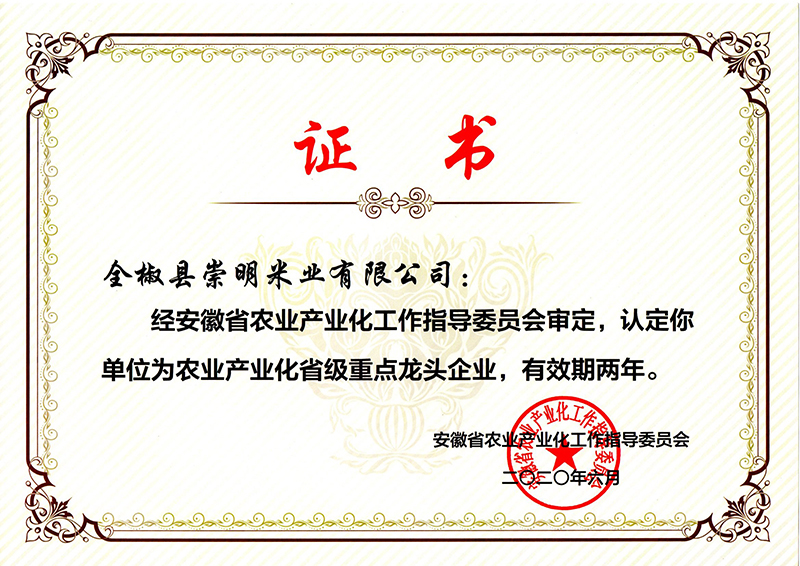 農(nóng)業(yè)產(chǎn)業(yè)化省級(jí)重點(diǎn)龍頭企業(yè)